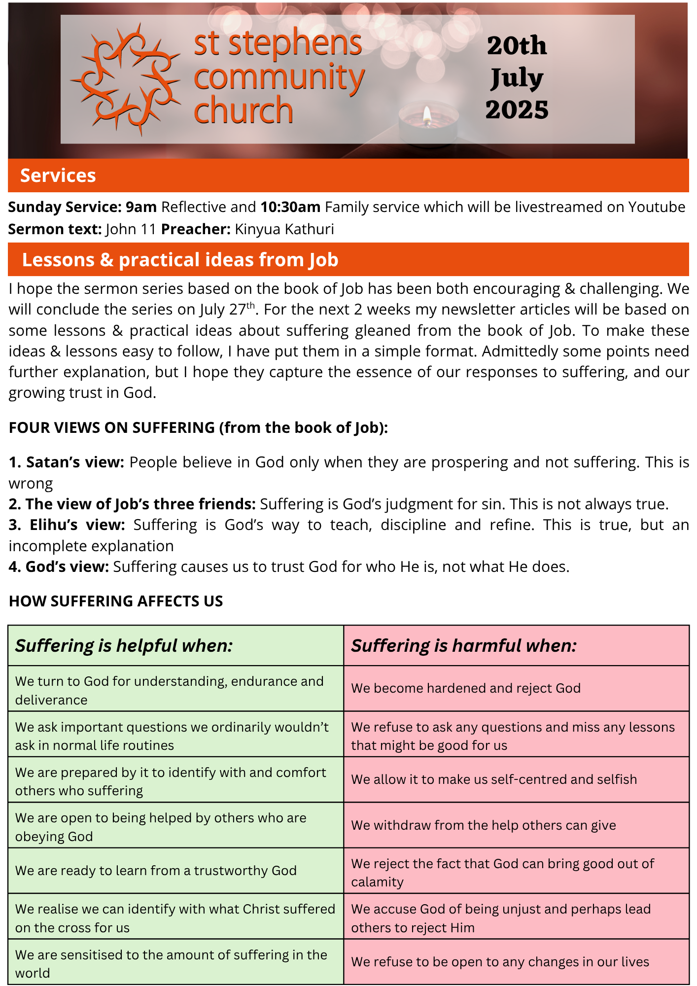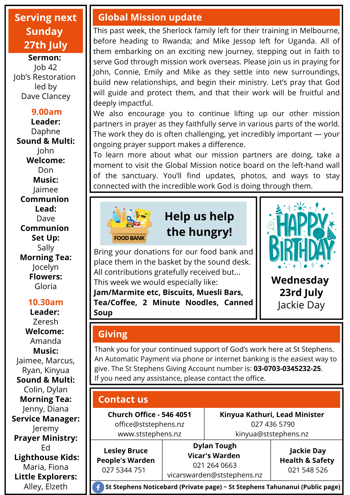 Bulletin 20th July 2025